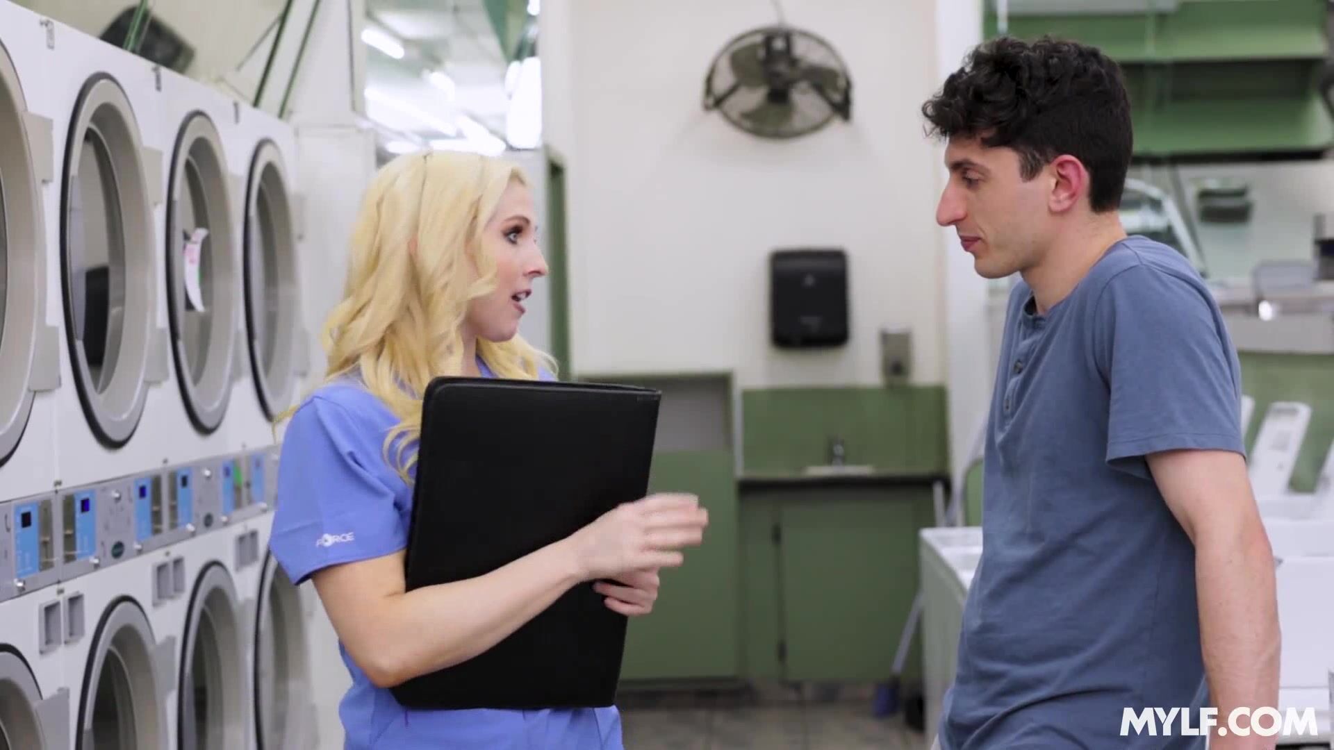 Threesome with laundromat milf owner and her daughter Video