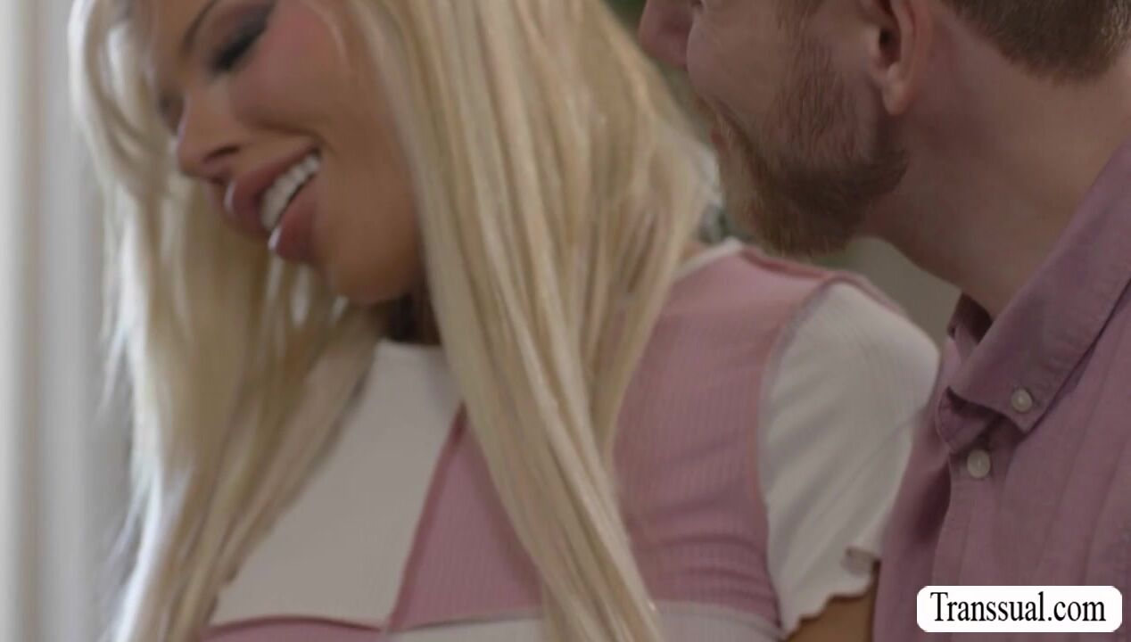 Tranny babe Brittney Kade and TS friends husband are on the bed kissing each other after they decide to swap their husband.After that,she throats his hard big cock passionately and in return,the guy fucks her tight ass so deep and hard.