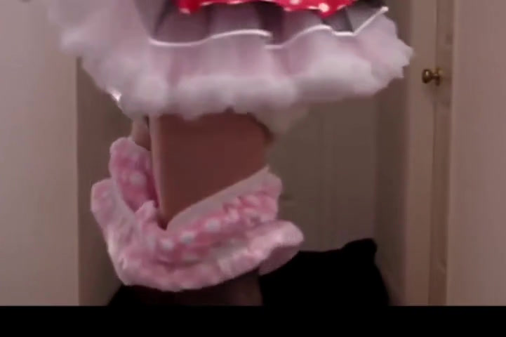Description: Diapered sissy princess in pretty red dress gets triple diapers to insure no leaks