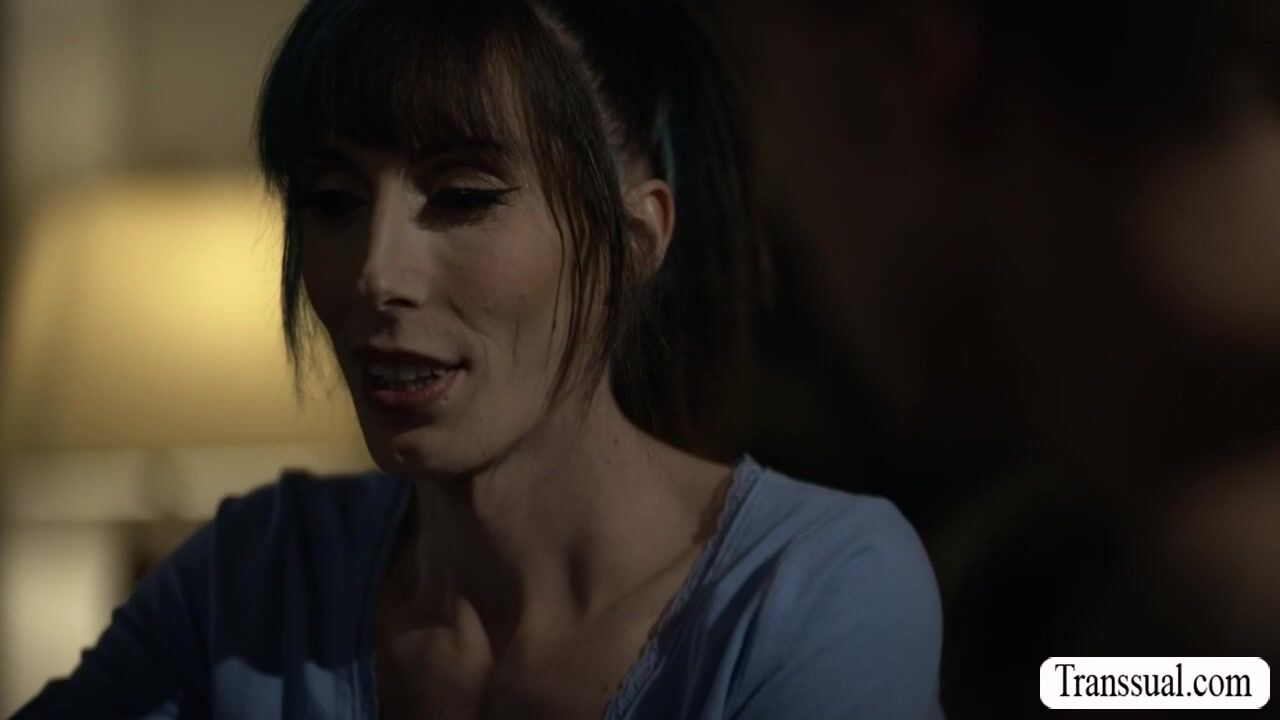 MILF shemale Melanie Brooks comforts her stepson by kissing him and throating his hard big cock passionately.In return,she lets her stepson lick her tight ass first before he bareback fucks it so deep and fucking hard.