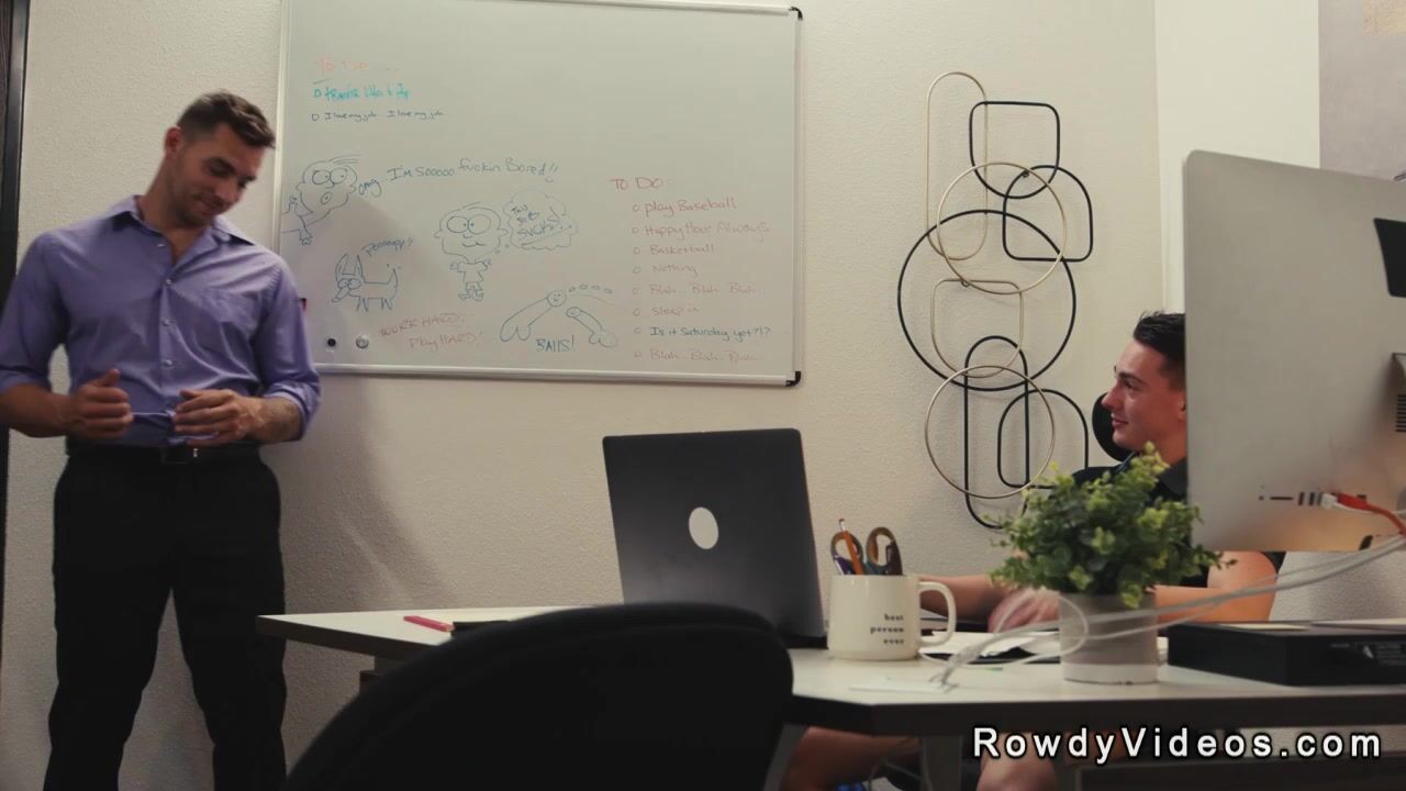 Gay masturbate and anal fuck colleague in the office Video
