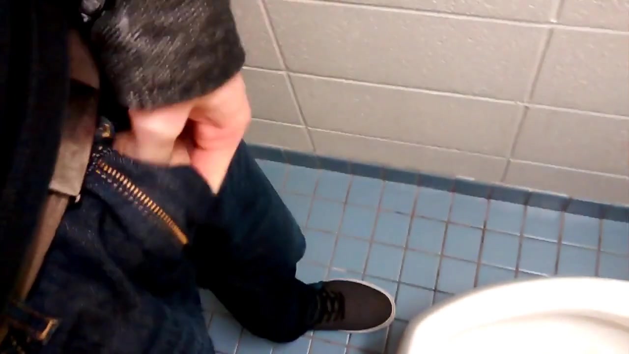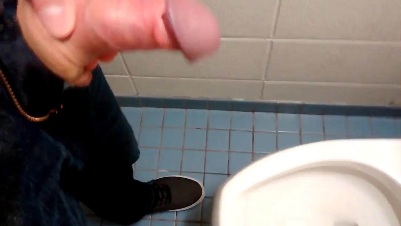 Playing with my uncut cock in a public washroom