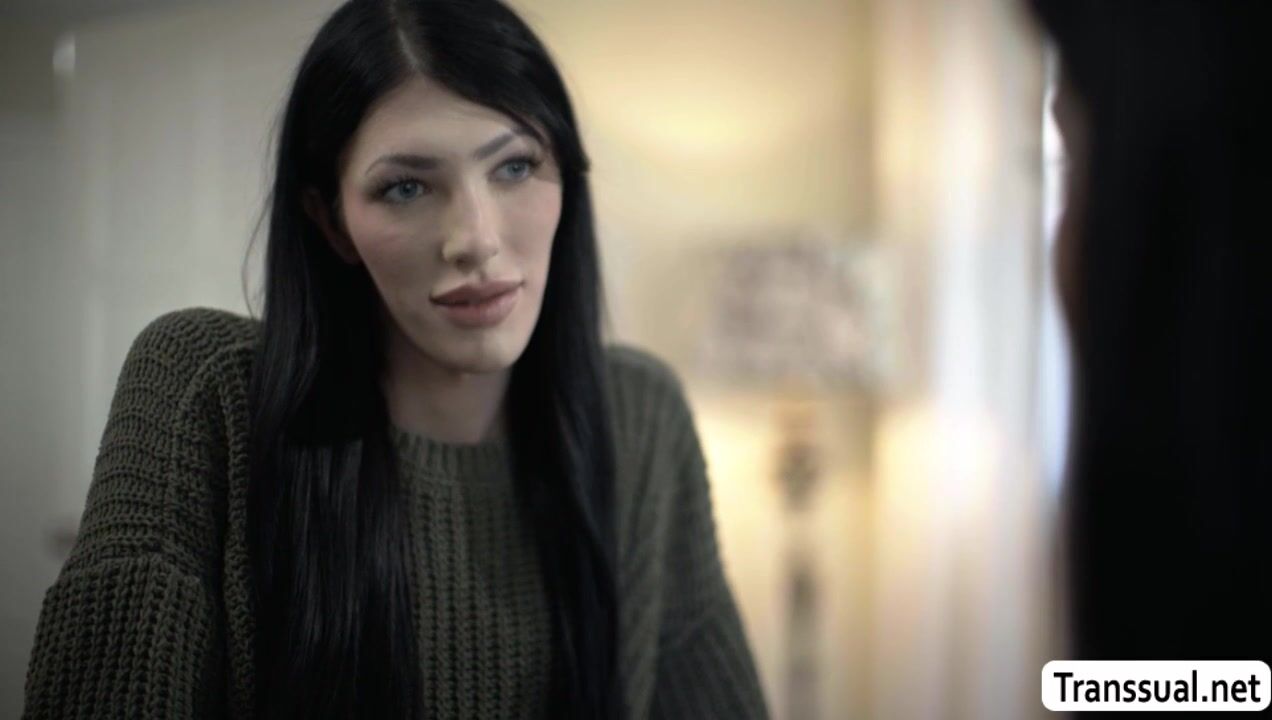 Skinny TS stepmom and her teen stepdaughter are kissing each other on the bed.After that,she lets her stepdaughter throat her hard shecock passionately and in return,she licks her wet pussy and fucks it so deep and hard.