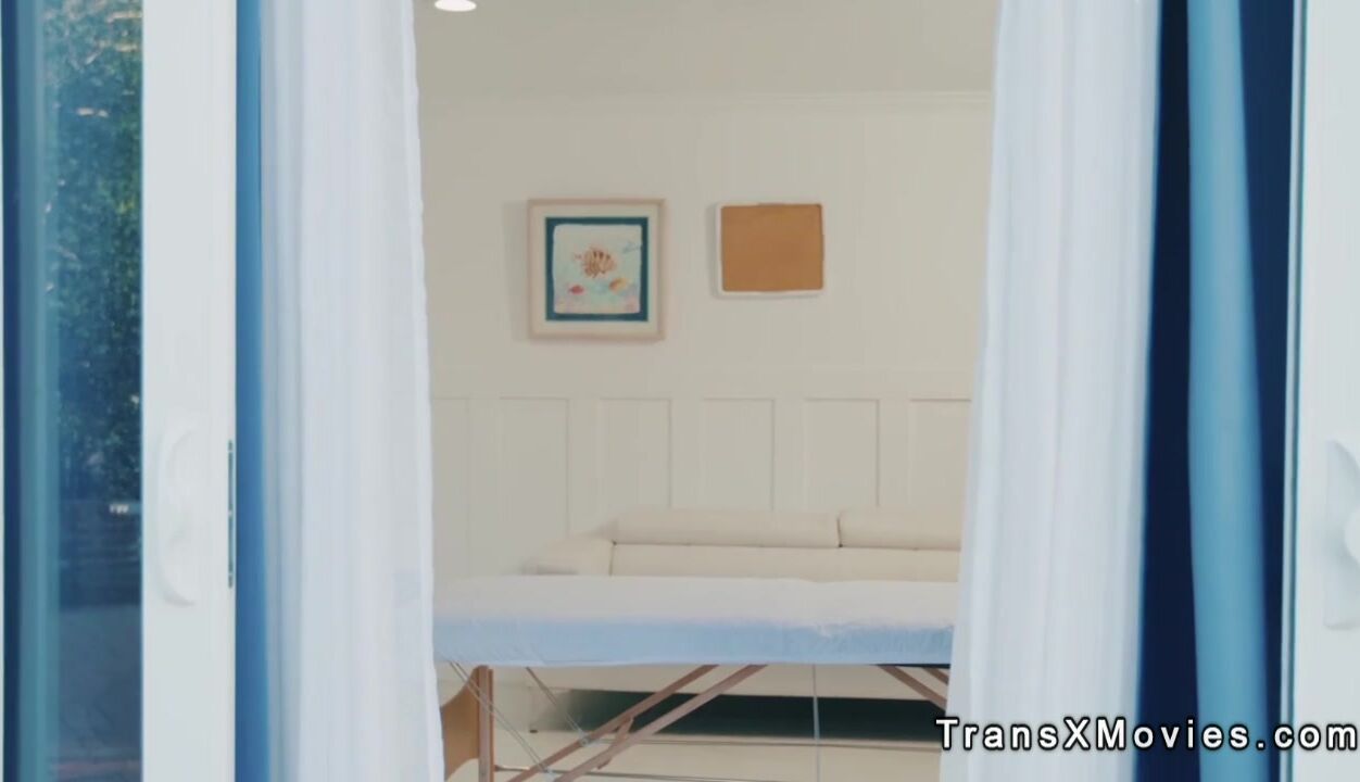 Description: Shemale girlfriends Jean Hollywood and Shiri Allwood visit masseuse Kenzie Anne in massage parlor in resort and there have threesome sex action in various positions