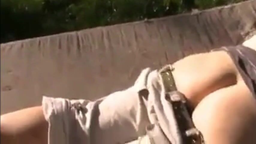 Cute nudist teens filmed by voyeur as she sits naked outside