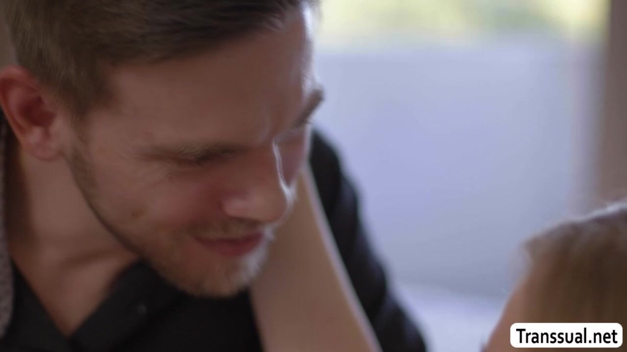 Lovely shemale Crystal Thayer and her husband are kissing each other on the bed.After that,she throats husbands big cock passionately and in return,her husband bareback fucks her wet ass so deep and hard.