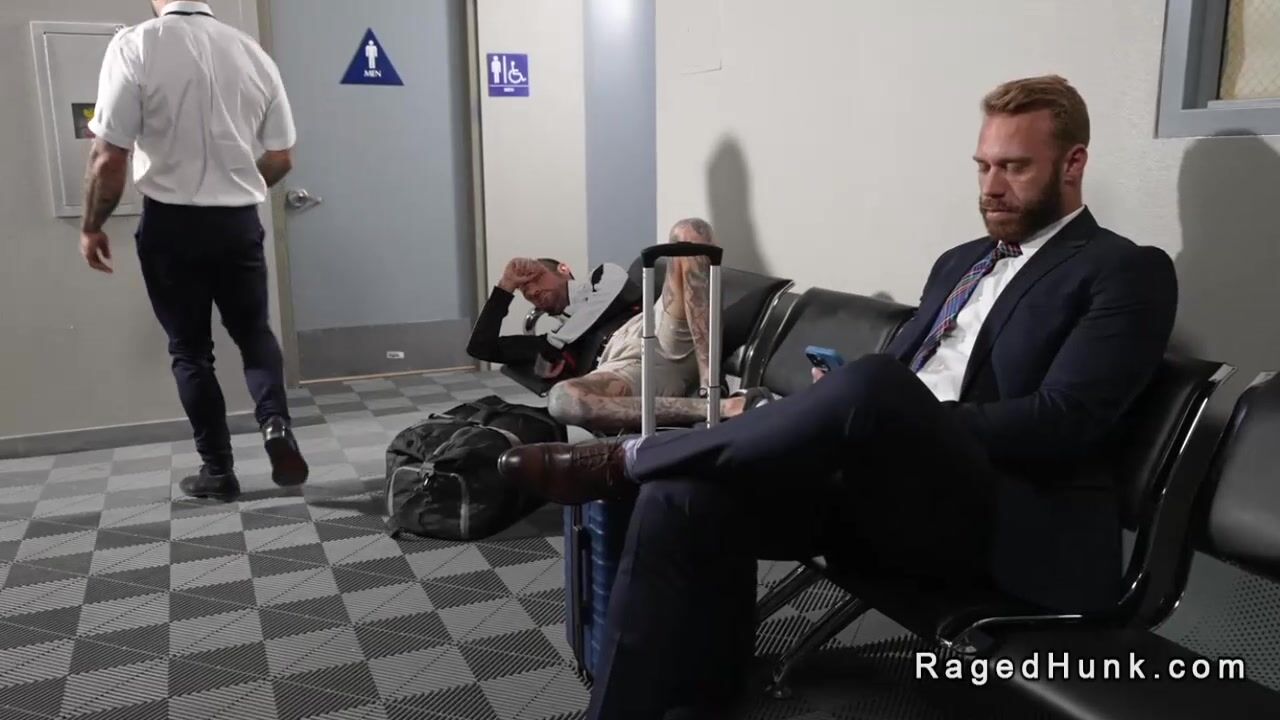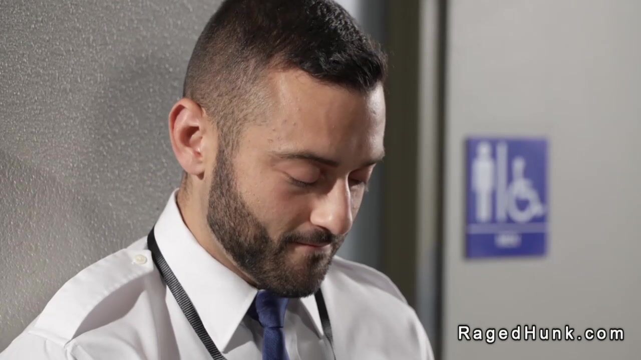 Flight attendant fucks businessman in rest room Video