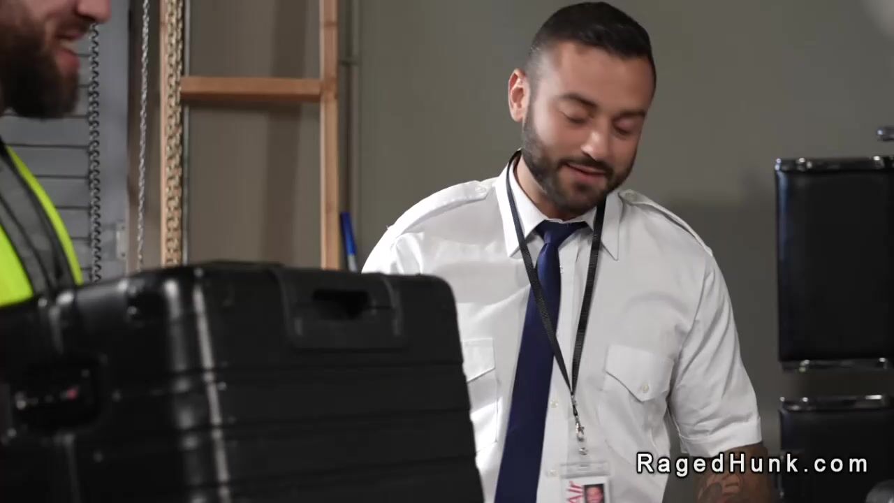 Gay flight attendant suck and anal fuck in baggage room Video