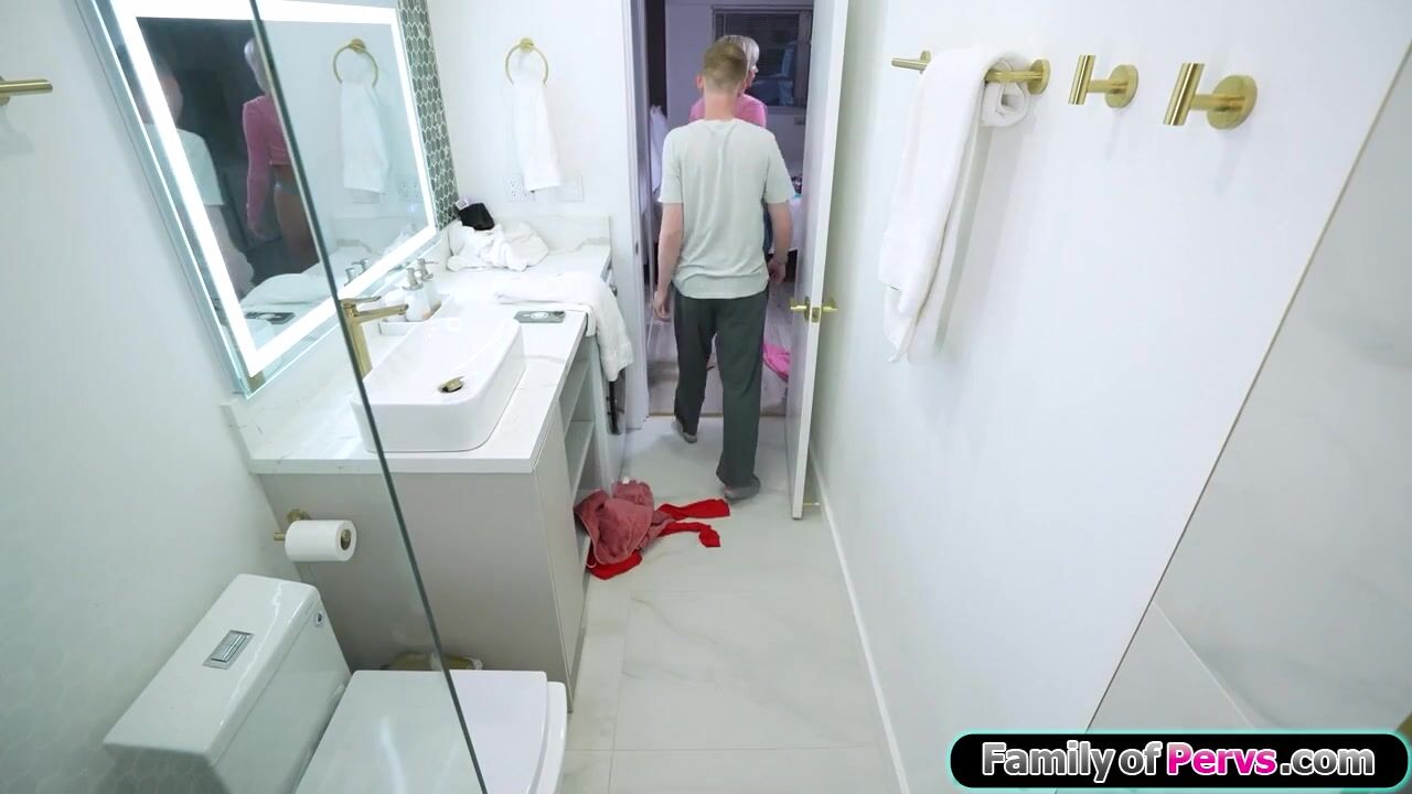 Stepsister catches stepbrother jerking off to her in the bathroom and helps him.The babe plays with her big tits as he gives self a handjob.The busty blonde deepthroats his big cock and he licks and fingers her pussy.He fucks her as she masturbates