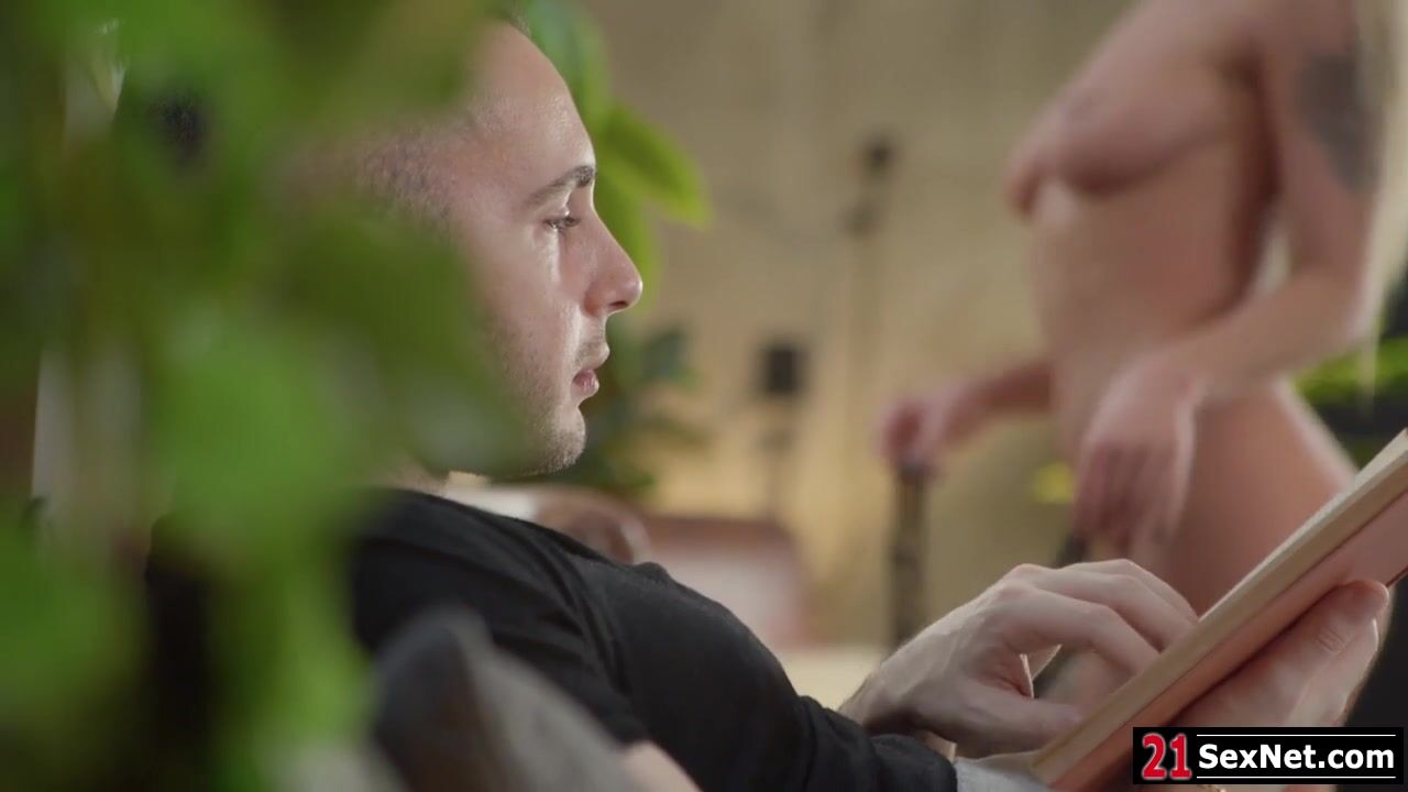 Big tits babe Zlata Shine is stripping in front of her guy.After removing her lingerie,she joins him on the bed and gives blowjob.The blonde russian babe masturbates and deepthroats his big cock.The guy licks her shaved pussy before fucking her ass.