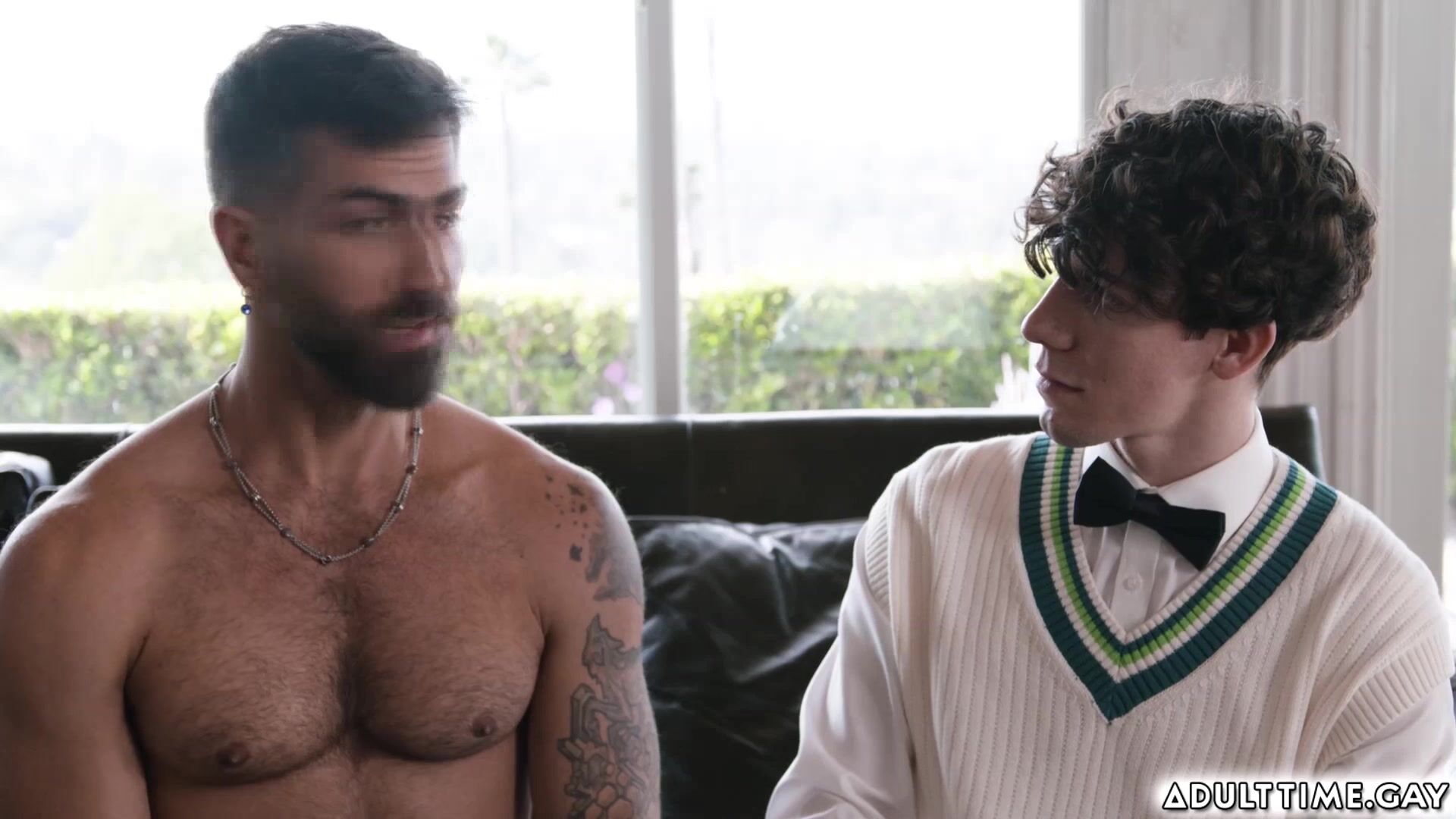 Twink Cristiano is going door-to-door, but when he knocks on his neighbor Adam Ramzi's door, he's taken aback when he's greeted by a sweaty and shirtless Adam, They go inside but Cristiano can't help but look between Adam's legs as his cock is showing. Adam teach him to fuck because he is still a virgin.