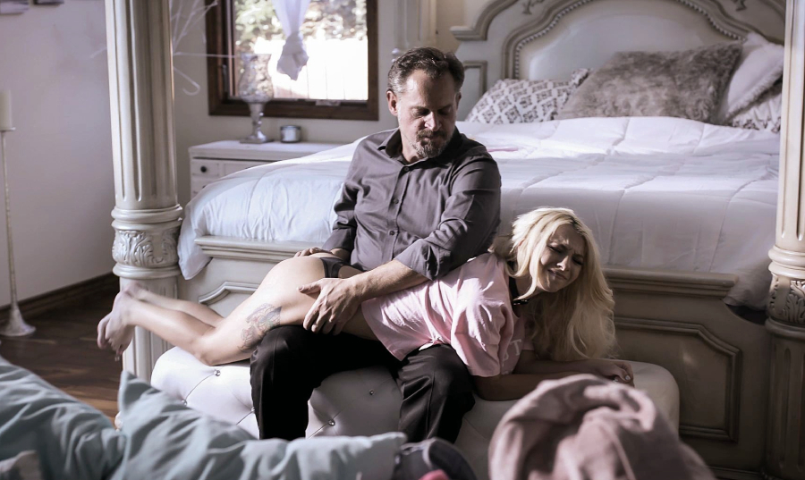 Stepdad catches teen stepdaughter stealing and spanks her as a punishment.The older man gets a boner and asks her to let him lick her shaved pussy.He gives her oral sex and the 19yo babe gets banged.Then the petite blonde gets deepthroat facefucked