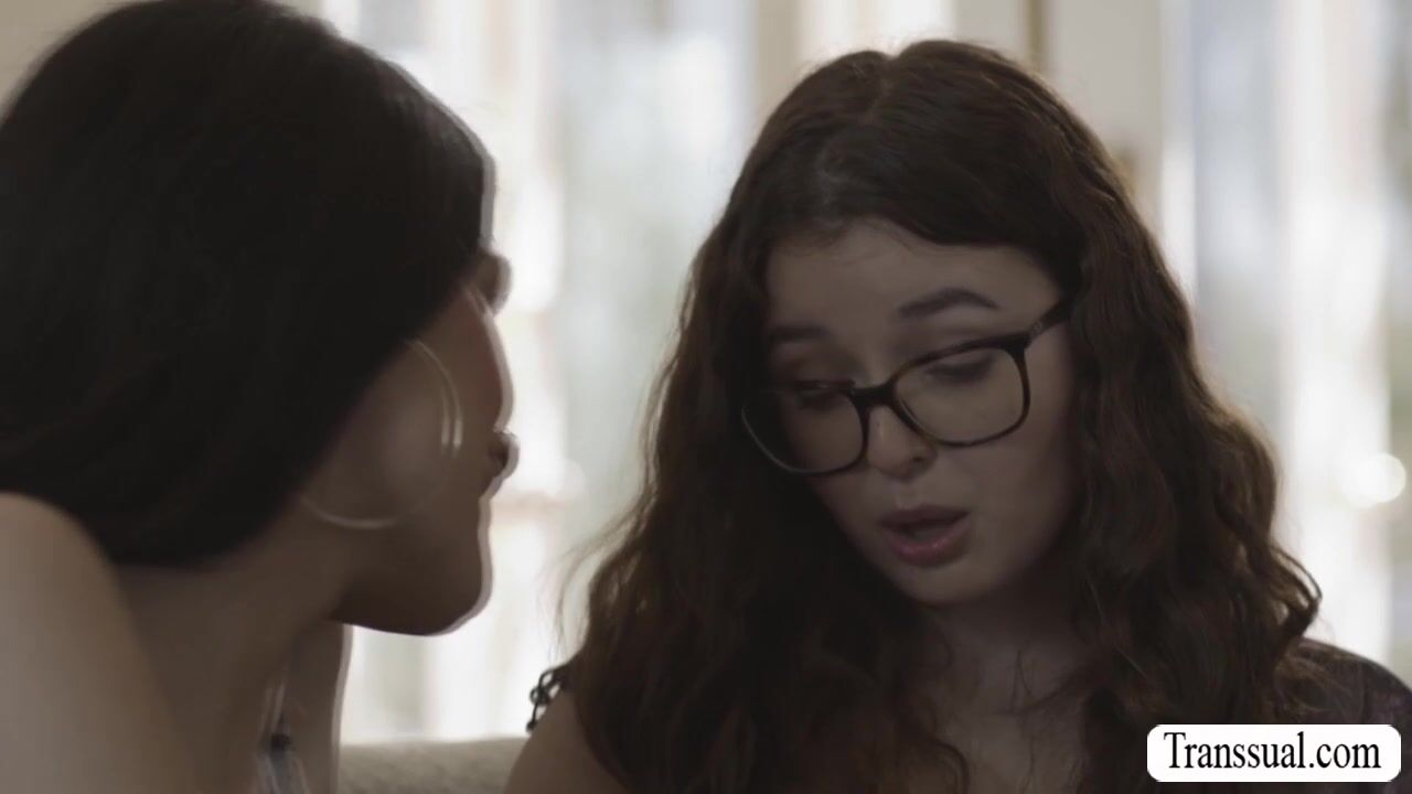Teen nerd Leana Lovings visits the TS girlfriend of her bestfriend.They start kissing each other on the couch and she lets TS Zariah Aura lick her pussy first.In return,she sucks her hard shecock and lets her fuck her wet pussy so hard.
