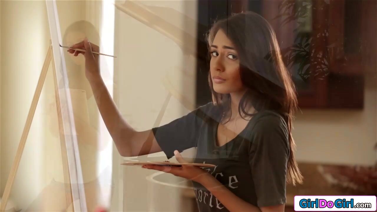 Big tits art model and busty teacher compare their boobs ifo the 18yo student.When they start to kiss the teen wants to join.The lesbians make out and the tutor masturbates on the two licking in a 69er before she eats out the teens shaved snatch
