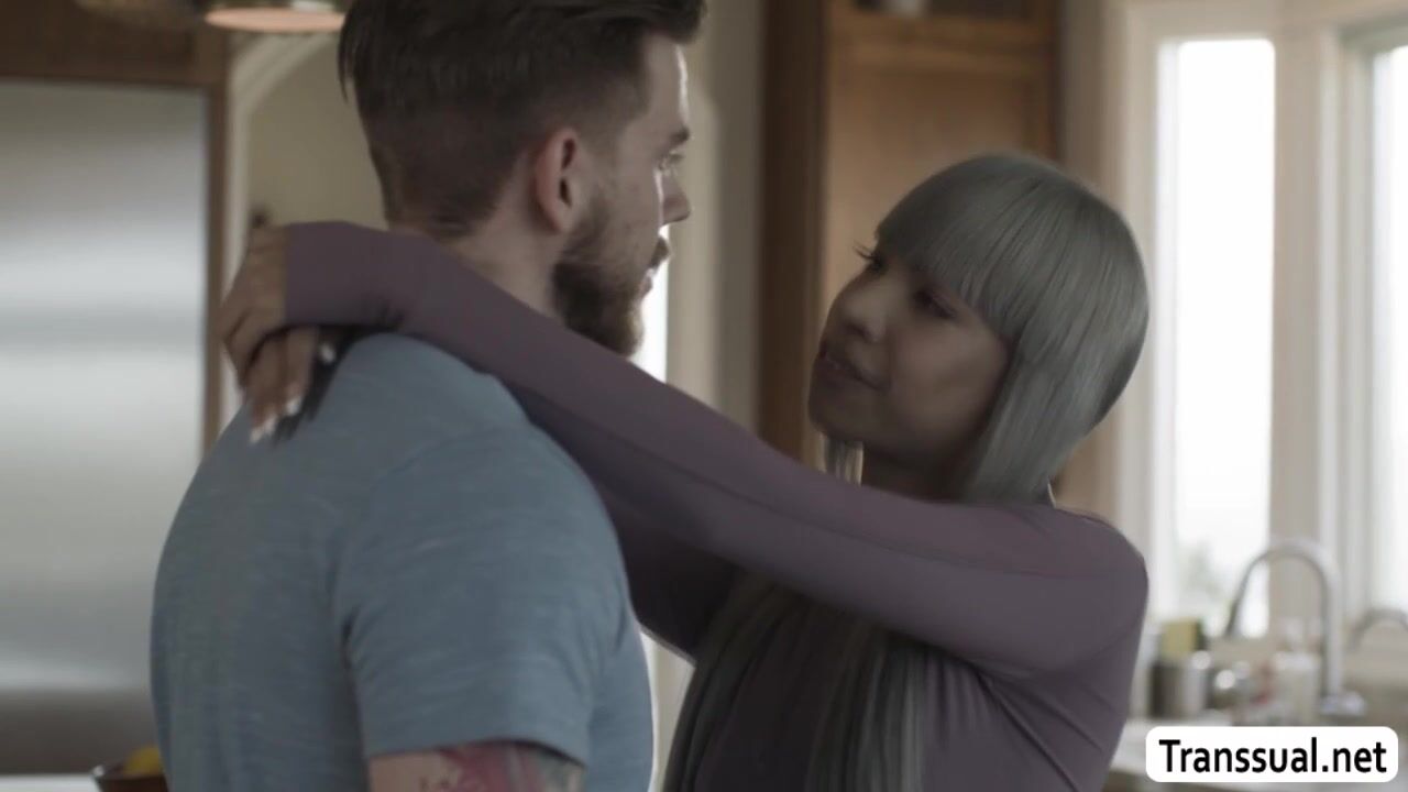 Sexy Trans Woman and the boyfriend of her bestfriend are in the kitchen kissing.After that,she lets him suck her hard shecock passionately and licks her ass to makes it wet.Next is,the guy bareback fucks her wet ass so hard.