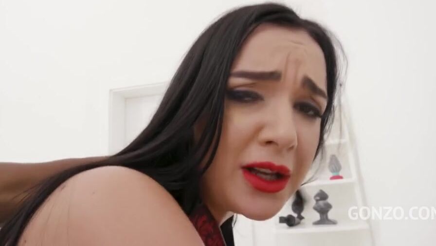 Leashed Brunette Intense Gangbang Video