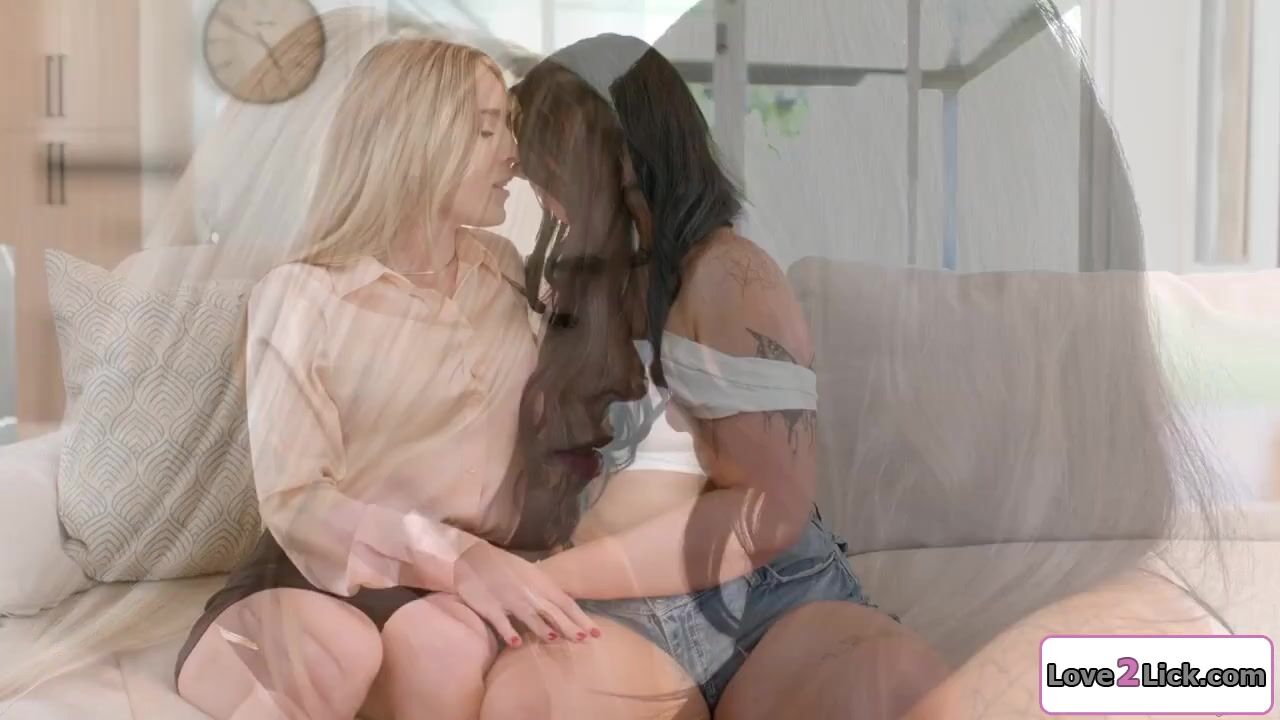 Busty milf returns to college and a college student wants to give her the full experience.They kiss and the curvy babe sucks the older womans big tits.The tattooed brunette girl gives oral sex and the blonde rims her as she fingers her shaved pussy