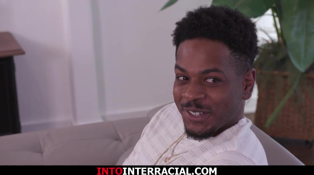 Two black guys are talking about their friends crazy gf when she shows up at their door.When she offers to suck off their bbcs they cant resist.The small tits petite blonde deepthroats their big cocks and sucks while getting her hairy pussy fucked