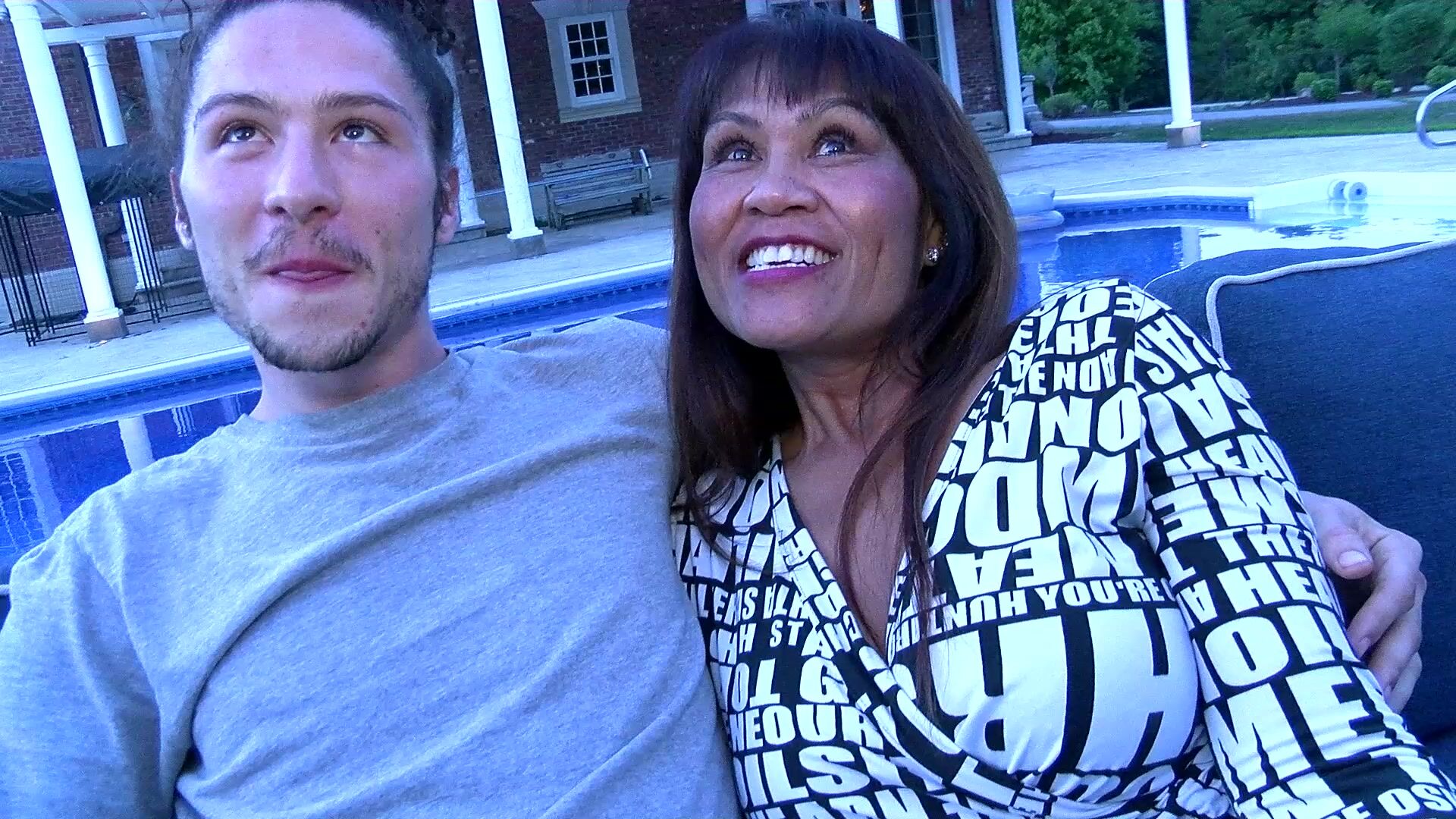 Sharon Amore is a horny grandma who gets fucked by her toyboy student at home