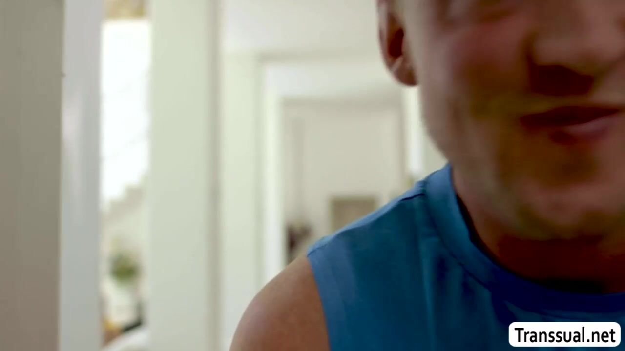 Shemale Foxxy gives her boyfriend a blowjob on the couch.After that,her boyfriend stands up and goes to the kitchen and start fucking her slut stepsister.She gets mad and brings her stepsiter upstair and they fuck her wet pussy together.