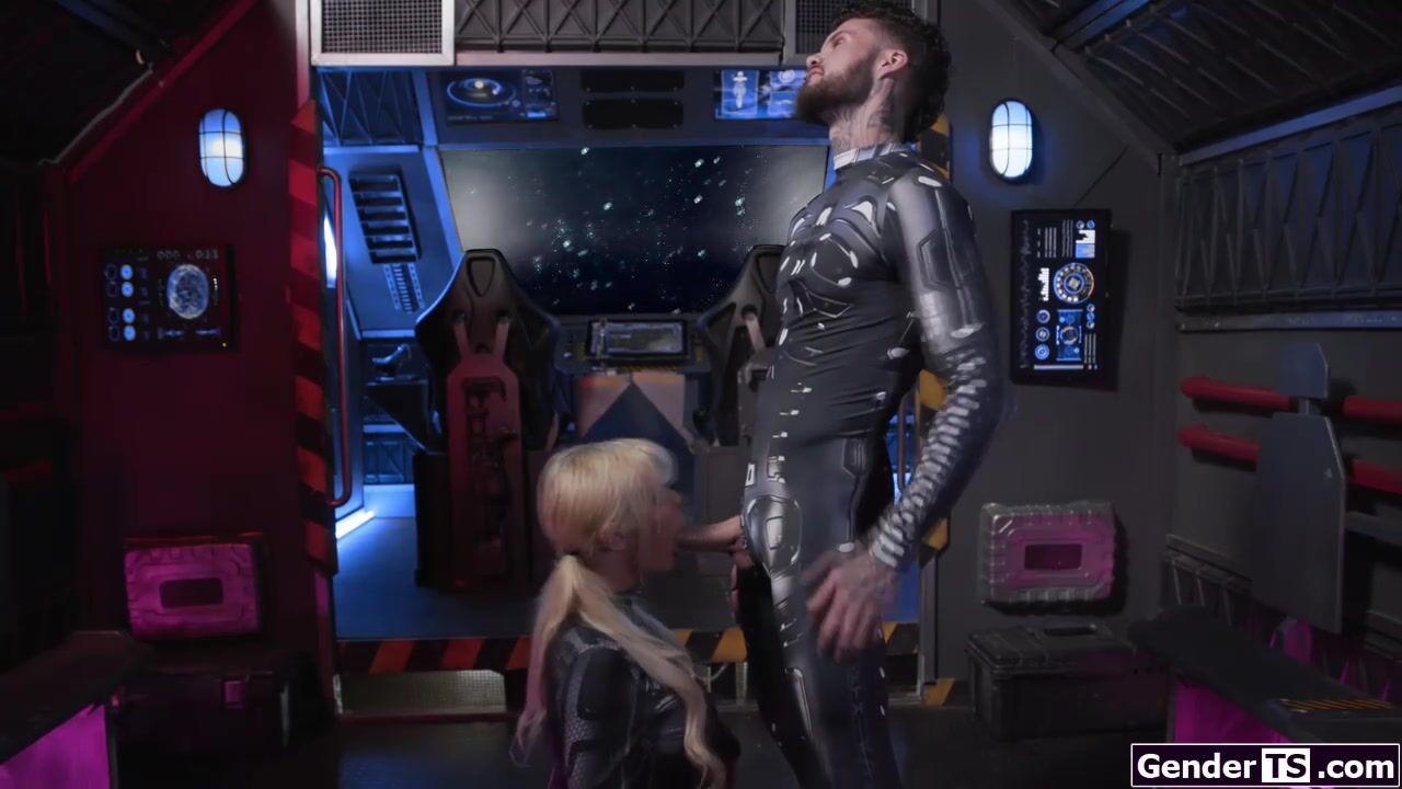 Big tit trans space captain Brittney Kade wants to suck cock and orders her subordinate to give to her.The big boobs blonde ts gives a double handjob before the guy deepthroats the shemales tranny dick.Rock hard the busty tgirl bareback anal rides