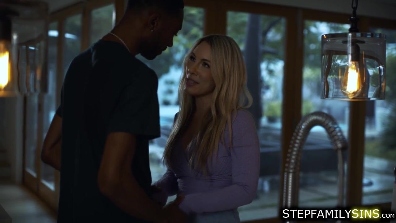 Big tits blonde milf craving for attention is hooking up with her husbands stepbro.She hesitates but then gives in and starts kissing him.The guy is licking her shaved pussy.She deepthroats his bbc then rides on it getting her pussy fucked hard