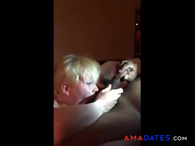 Description: Blond girl is sucking off a big black dick and swallows the load