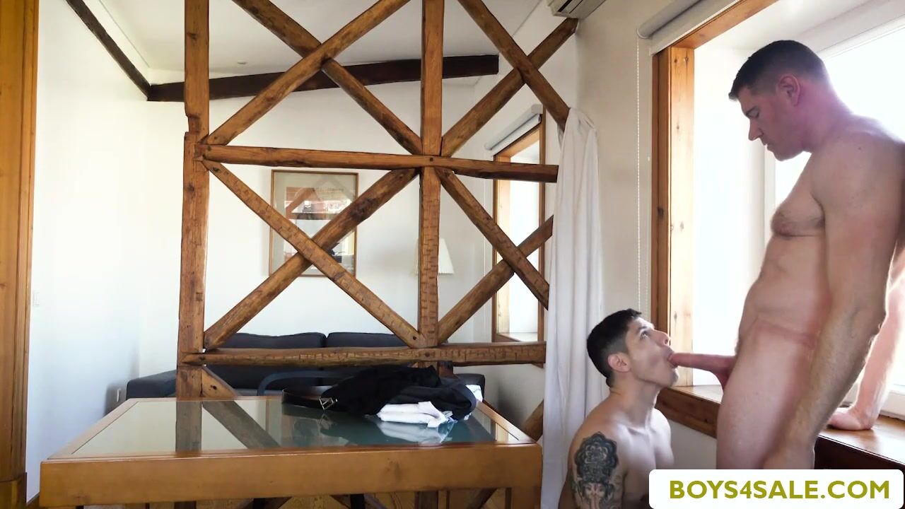 Master Legrand arrives his newly bought Gay slut Bastian in his office.He lets Bastian throat his hard big cock passionately and in return,he then bareback fucks his tight wet ass so deep and fucking hard.