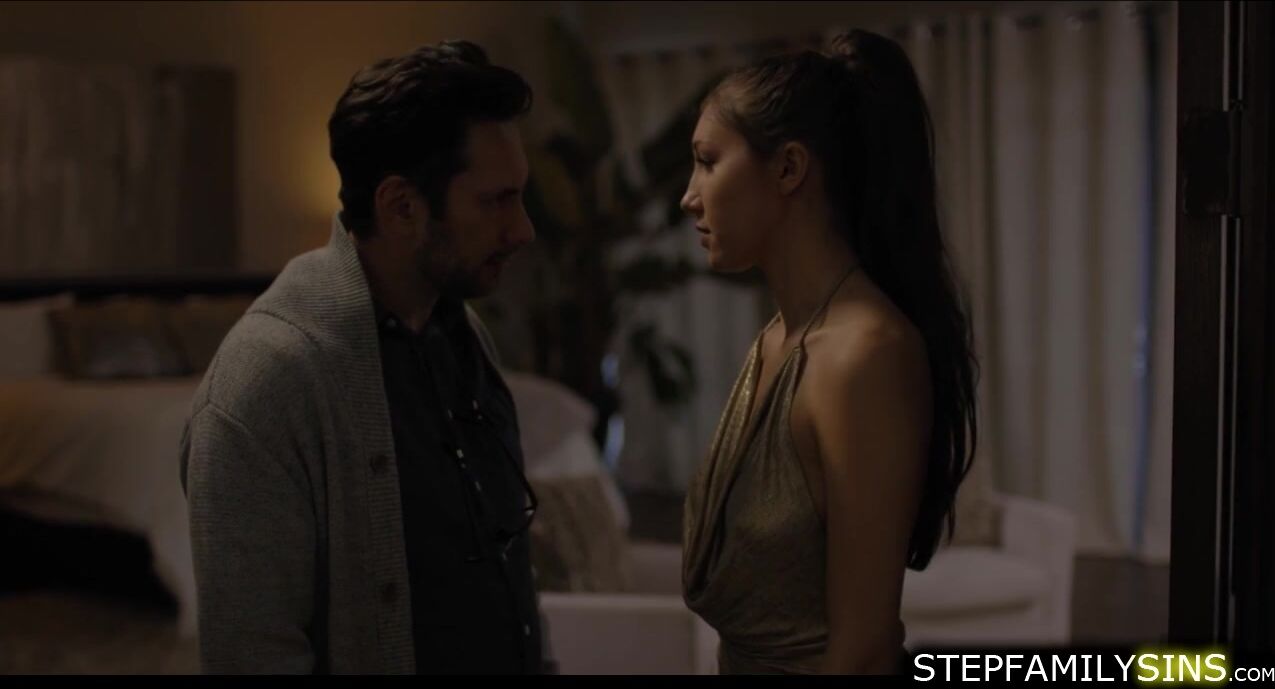 Maya Woulfe tries to sneak out to party but her stepdad caught her.She is seducing him in order for him to change his mind.The petite stepdaughter is giving her stepdad blowjob and then sucks his balls.The guy takes her to bed,licks and fuck her hard