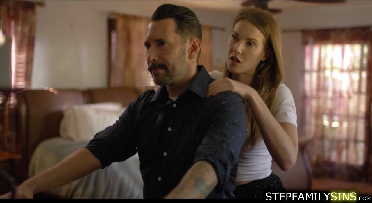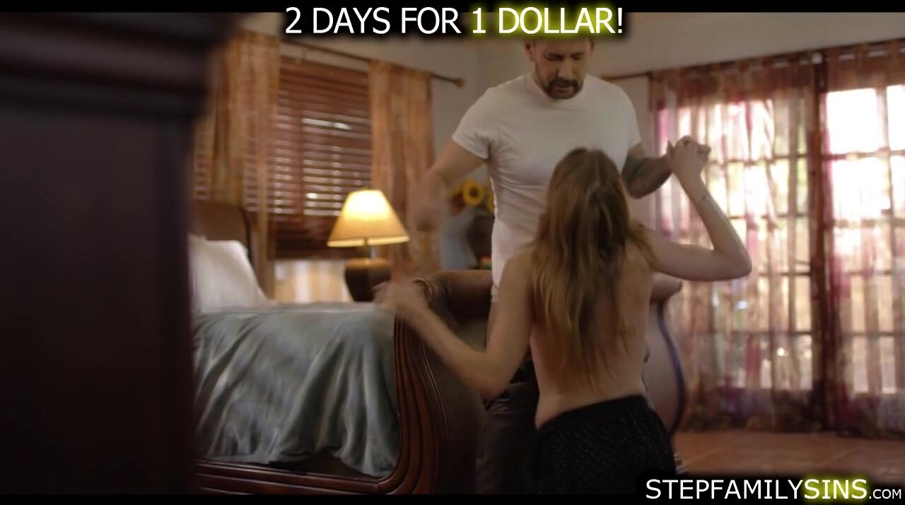 Brunette stepdaughter Ashley Lane gets caught by her stepdad masturbating on their bed.She wants him to keep it between them in exchange for a sloppy blowjob.The the guy wants more,he goes licking her shaved pussy,fucks her hard and makes her squirt