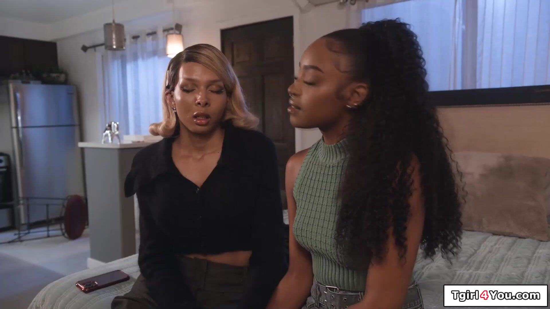 Destiny Mira and her busty ebony trans gf Valeria Atreides will not have their night ruined.The big tits shemale makes out with her petite ebony babe and gets her tgirl dick sucked off.The tranny is rimmed and makes tender love to her lover