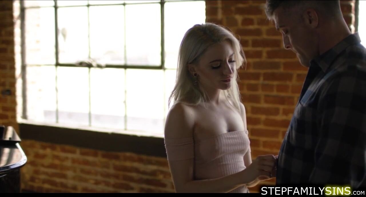 Description: Stepdaughter Lola Fae gets turned on hearing her stepdad liking her.She is kissing him then turns around while he is pulling her pants down.The guy takes her to the couch and starts licking her hairy pussy.The petite blonde moans while getting fucked