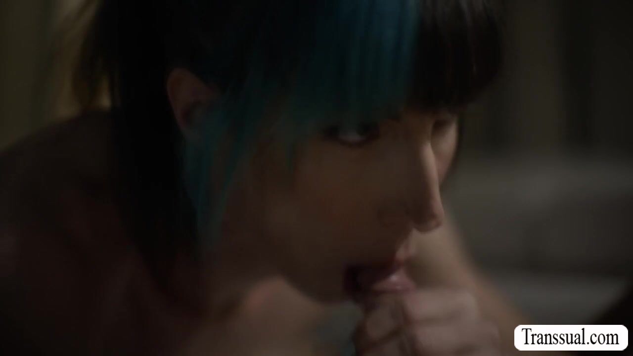 Description: Trans stepmommy and her handsome stepson are on the couch kissing each other.After that,she throats his big dick passionately and in return,her stepson bareback fucks her tight wet ass so deep and fucking hard.