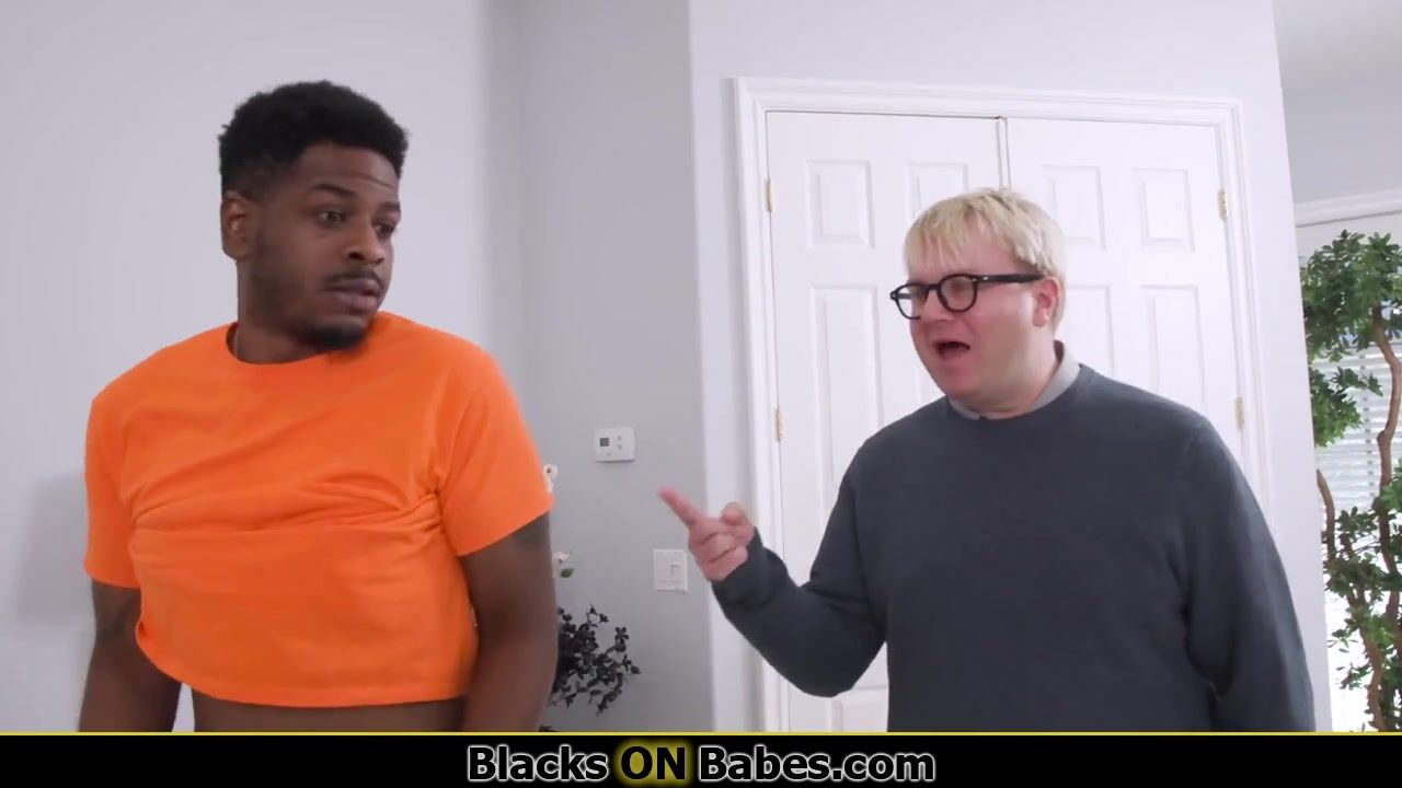 Description: Redhead wife Erin Everheart is flirting with the two black handyman.She invites them to have threesome on her bed where shes wearing sexy lingerie.Her husband arrives and catches her sucking a big black cock while the other is fucking her from behind