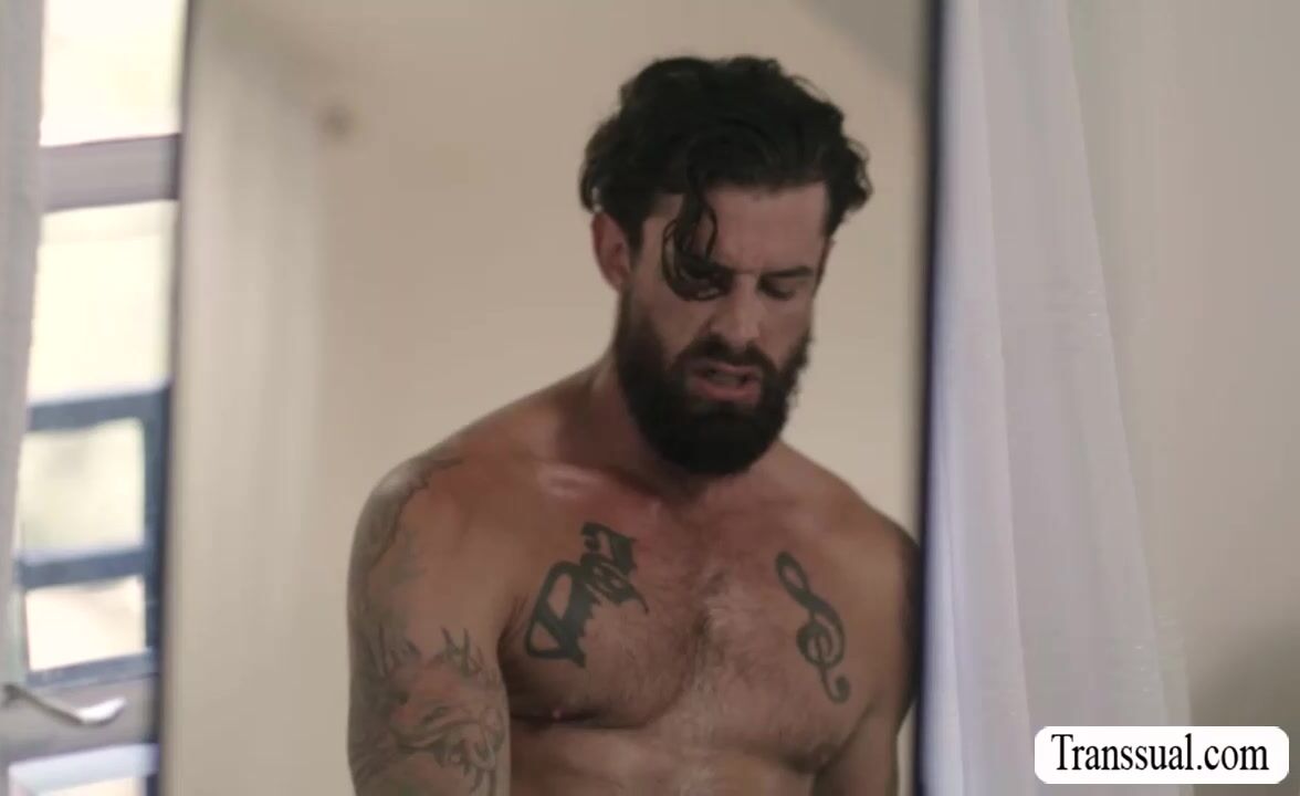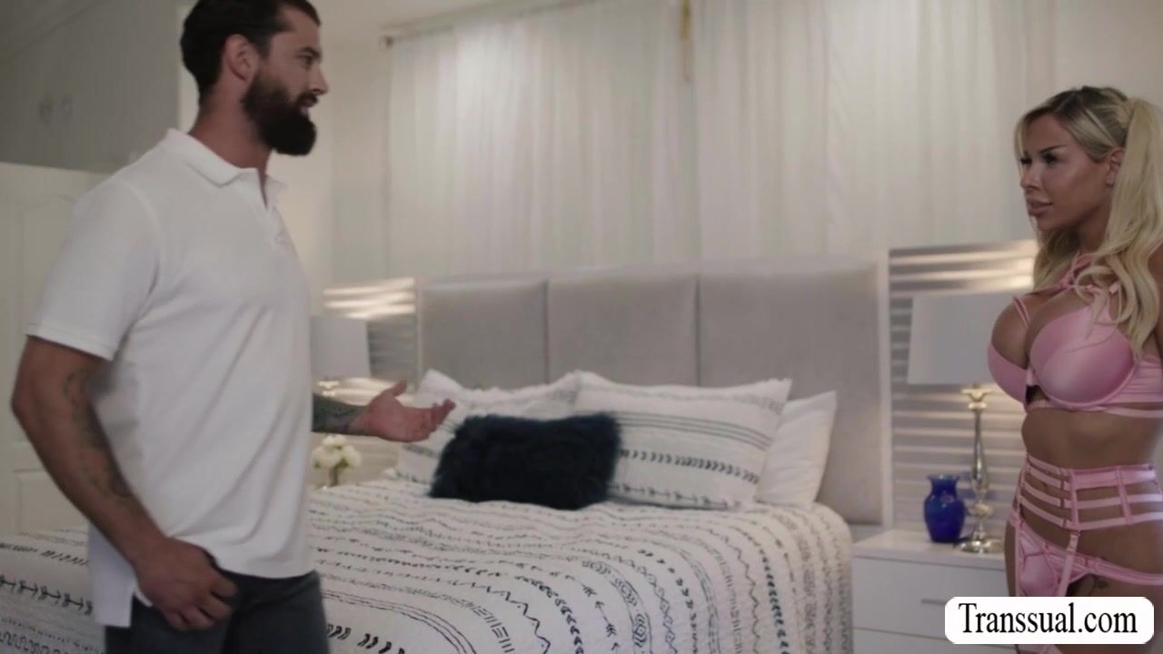 Trans hooker Brittney Kade gives her stepbro a lap dance on her room.After that,she throats his hard big cock passionately and in return,her stepbro licks and bareback fucks her tight ass so deep and hard.