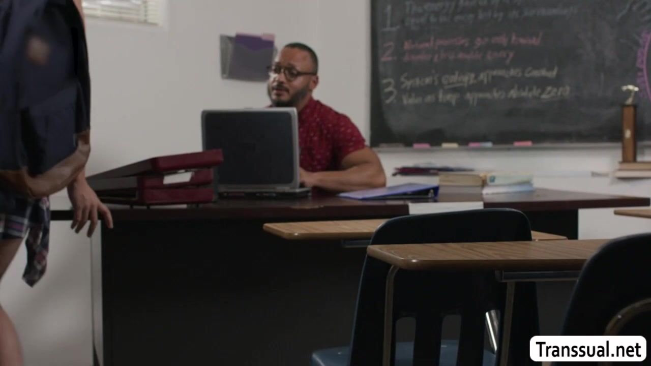 Trans stepdaughter visits her black stepdad in the room and she then throats his big black cock passionately.In return,her stepdad licks her ass first before he bareback fucks it so deep and fucking hard.