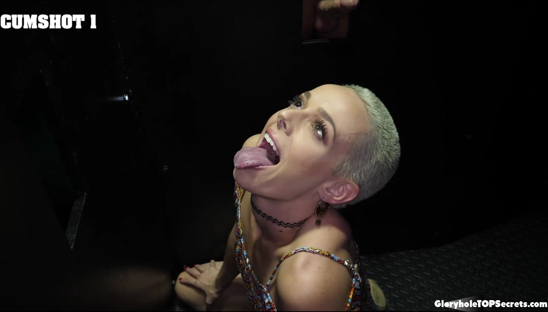 Blonde short haired Sidra Sage did a great job going down on both knees and sucking 8 big cocks and swallowing loads of semen. She genuinely enjoys it! Wanna know how it ends? Coming through this video gives you 73 percent off! Go to GloryholeTOPsecrets.com and the discount is applied.