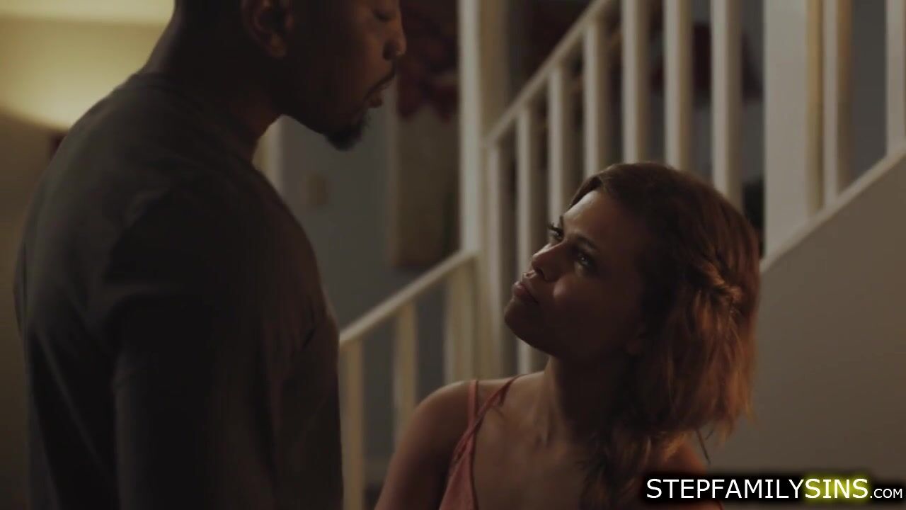Ebony Destiny Cruz is messing with her stepbro in law.The guy had enough and kisses her,he pulls dress down,and without resistance,he goes on licking her shaved pussy.The petite stepsis in law is deepthroating his big cock before letting him fuck her