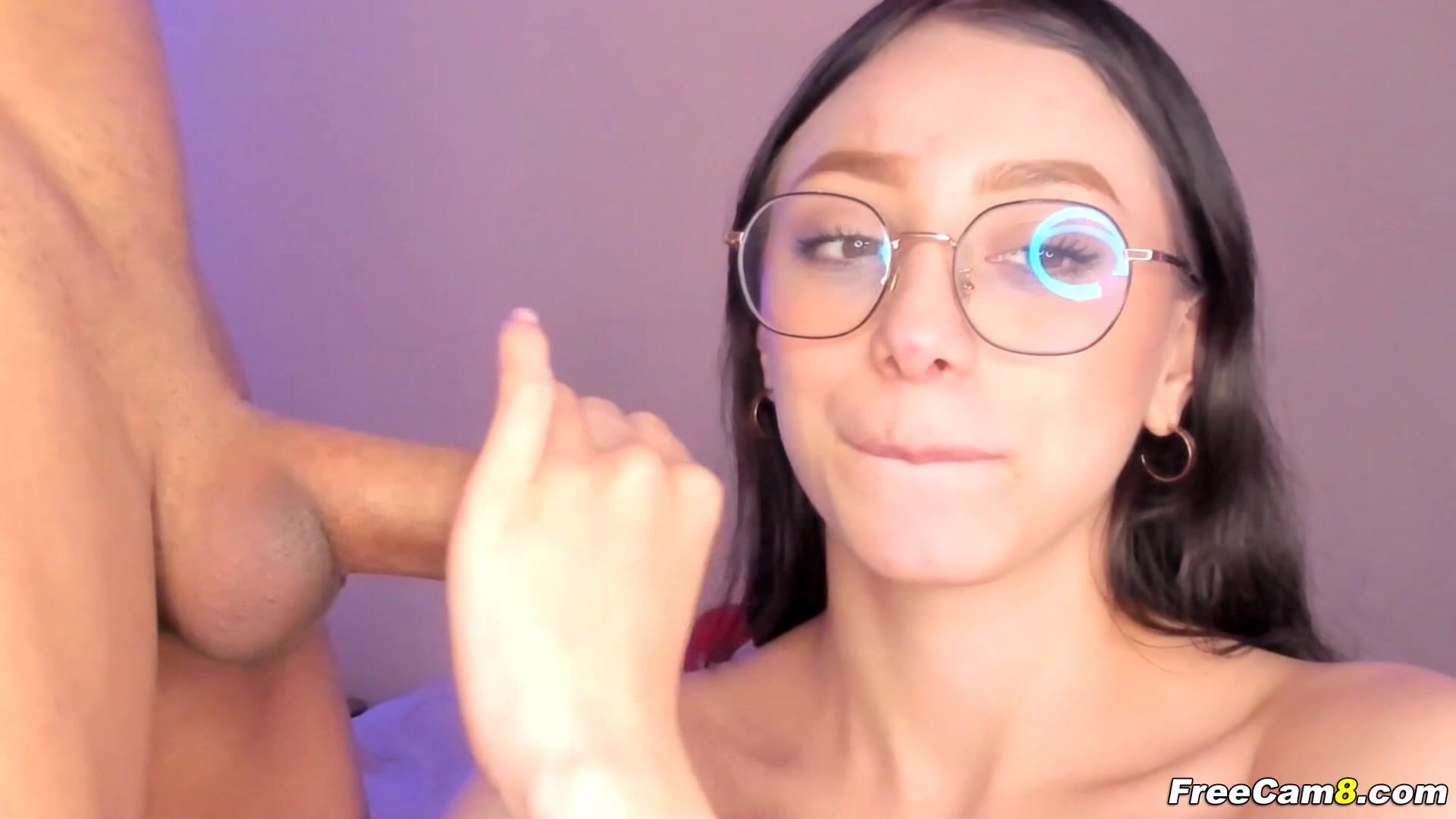 A pretty brunette teen on her knees to sucks huge dick. Her mouth seems so ready to swallows hard dick. With trembling hands, she reaches up to grab his throbbing dick. She moans as he pushes his throbbing dick into her eager mouth, her glasses fogging up from the intensity of her lust. The nerdy teen's lips were full and plump, perfect for wrapping around a hard dick. Her moans were muffled as she eagerly sucked and licked every inch of his hard cock.