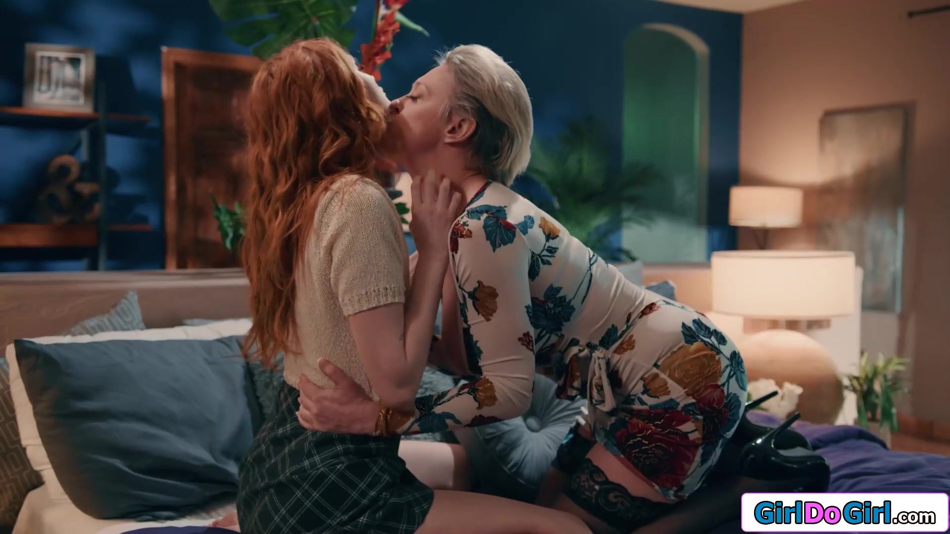 Small tits petite redhead Scarlet Skies is nervous for her date with busty dominant Dee Williams.The milf spanks the submissive ginger and pulls on her nipples.The mature blonde bounds her with belts and fingers and licks pussy before facesitting her