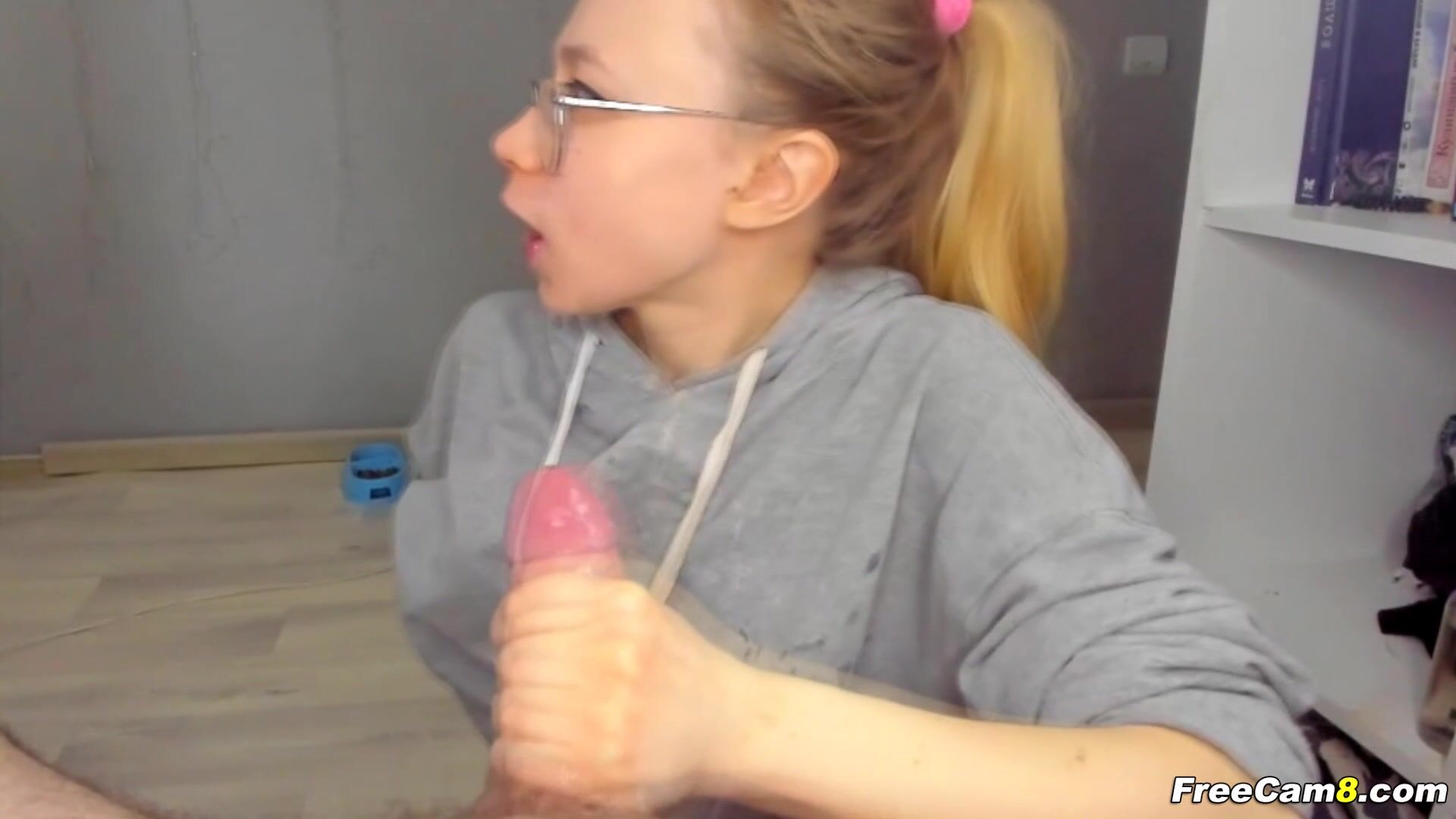 Watch this blonde babe on her knees to gives a wild blowjob to her friend. See her begging her viewers to give them tip so she can sucks more. She grabs her friend's hard dick and starts sucking it while making an eye to eye contact with him. She licks his dick until it gets harder, and then she sucks it like she want to swallow it whole. She keep talking to her viewers for gold while she sucks deeper and deeper.