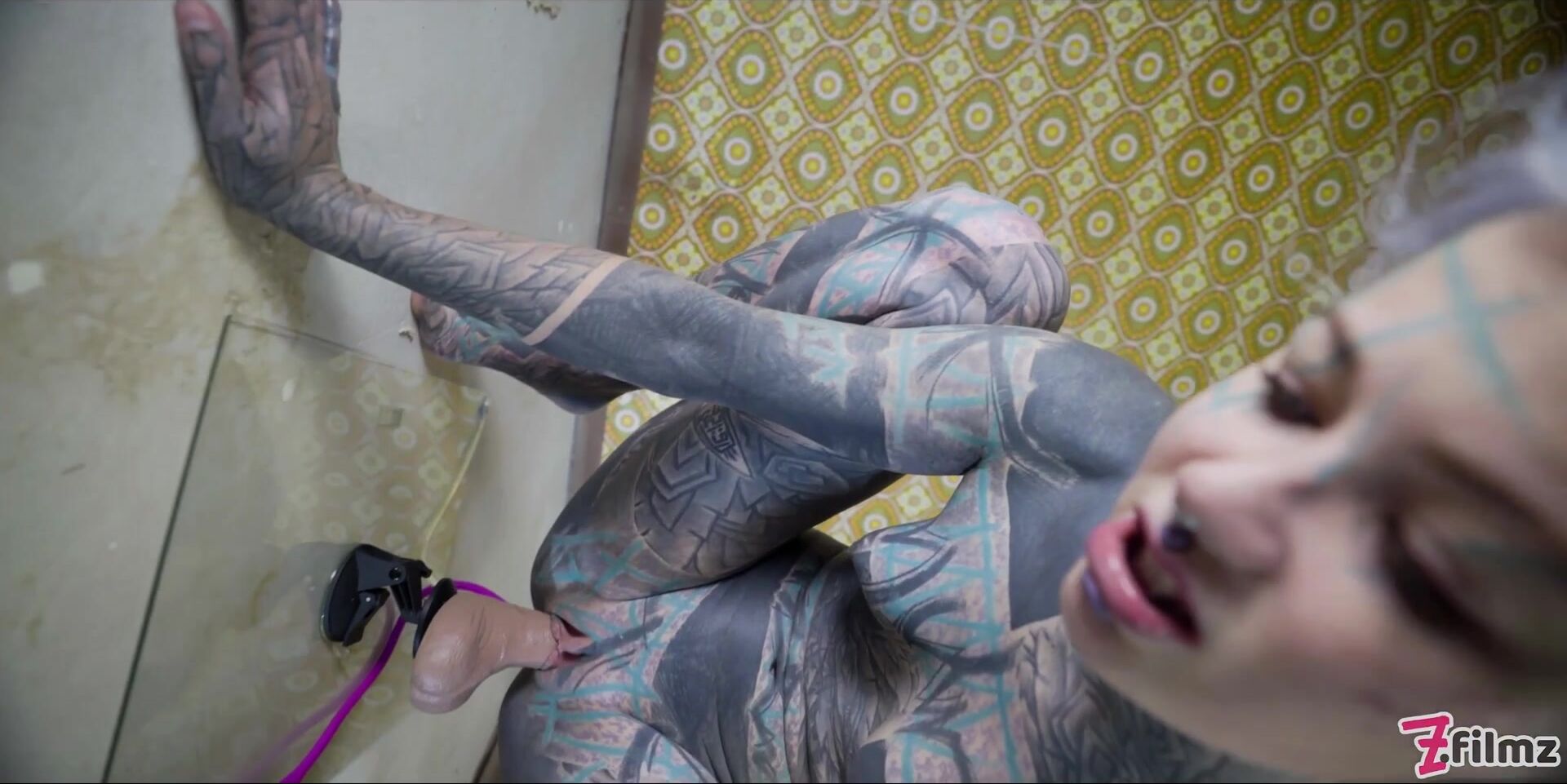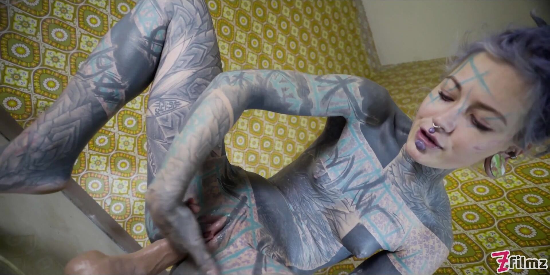Tattooed model Anuskatzz masturbating with a big toy Video