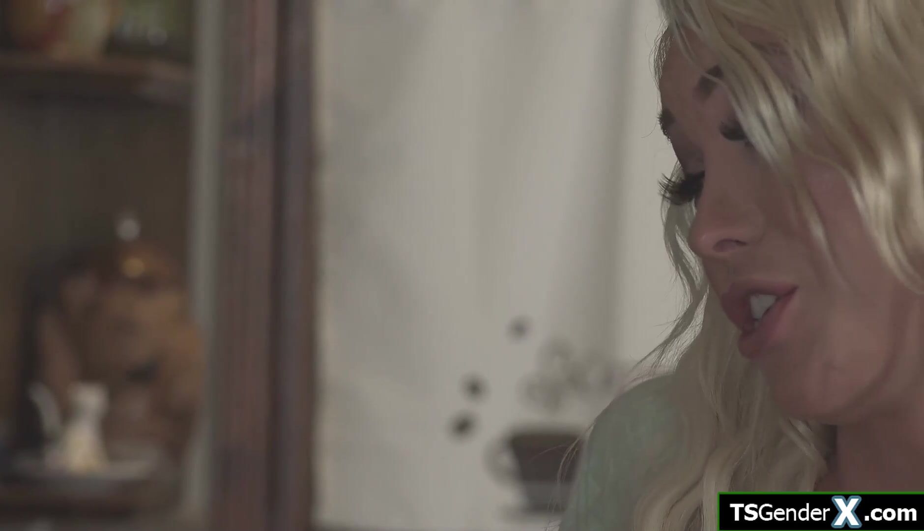 Description: Busty shemale stepsis Aubrey Kate compares her tranny dick with her stepbro.The dominant tgirl makes him suck her trans cock and bends him over the kitchencounter to anal bareback him.The blonde tattooed transsexual rewards him with a blowjob