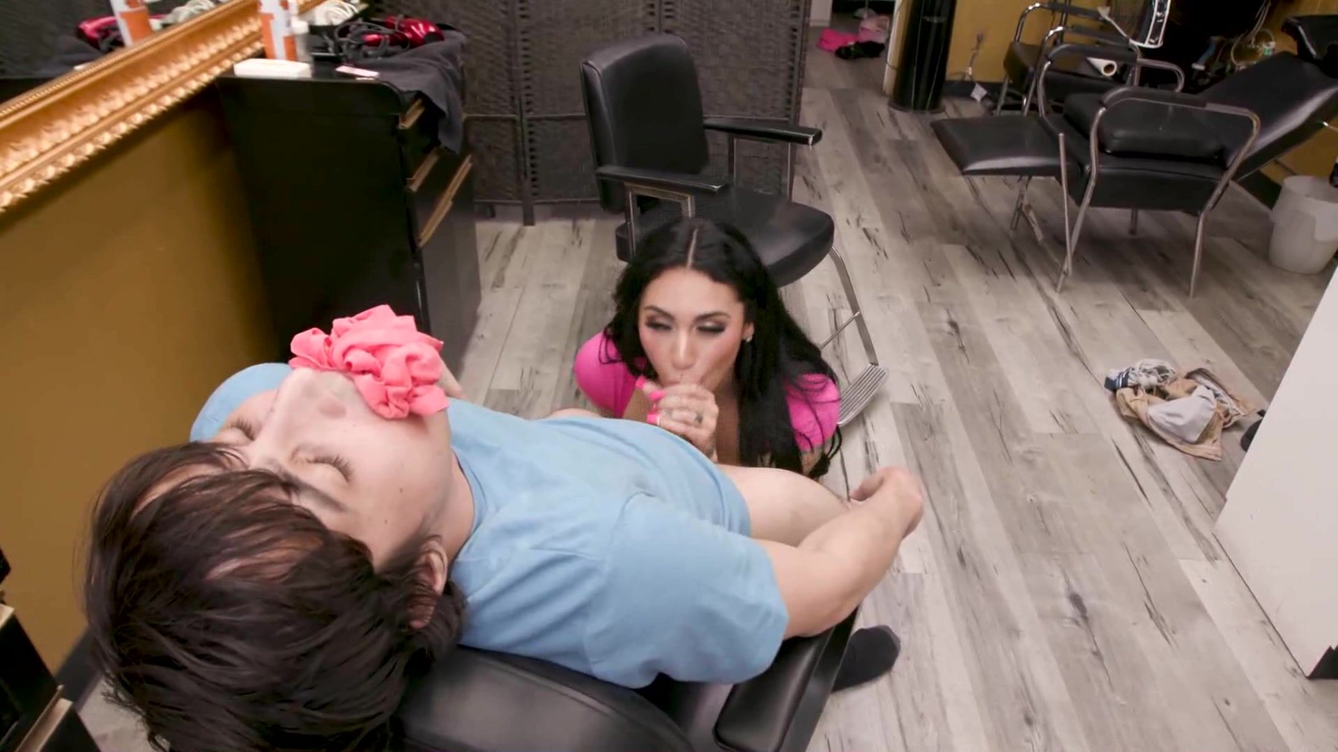 Mom hired a busty hot hairdresser for me Video