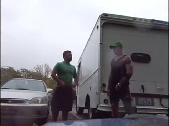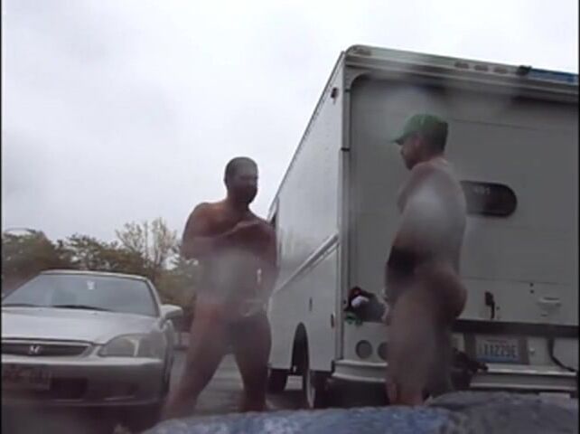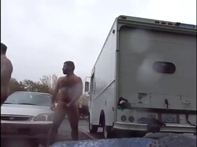 Public Rainy Stroking in a Parking Lot by Two Horny Men Video