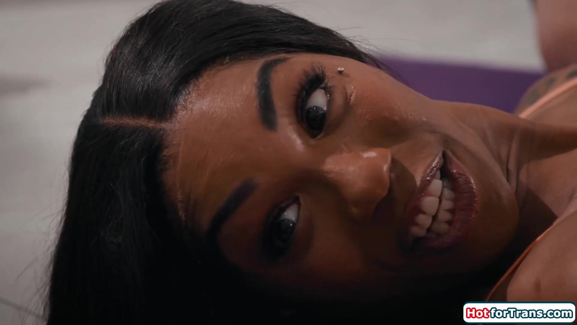 Busty ebony shemale Leilani Li asks her asian tgirl Kasey Kei for help to seduce yoga teacher.The small tit trans takes her bbc out and the guy is eager to suck.Both tranny babes give him a blowjob before they all bareback anal ride each other