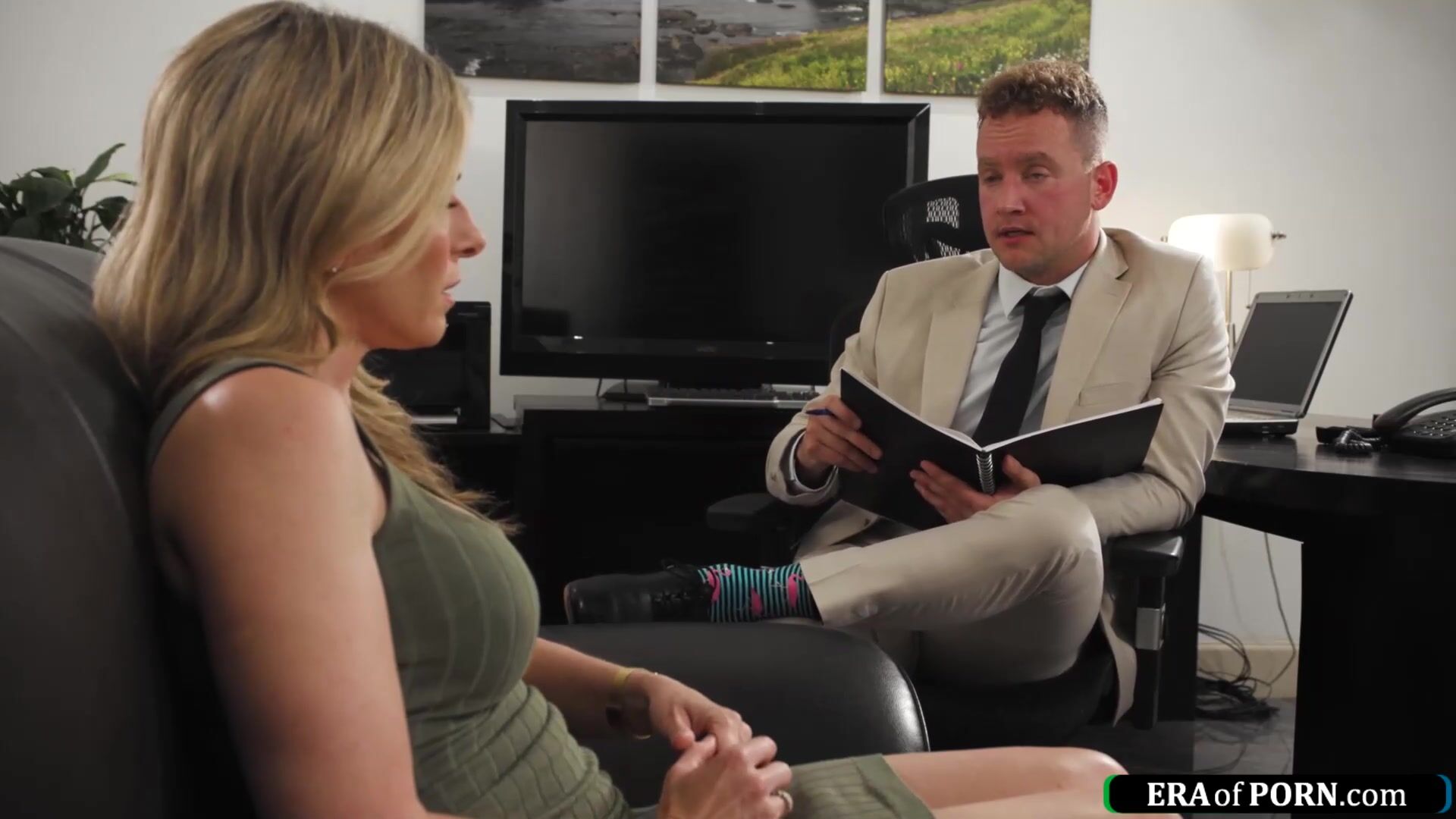 Big tits milf nympho Cory Chase is shocked to see her counselor jerking off on her.But once a nympho always a nympho so the busty cougar kneels ifo him and deepthroats his big cock.The blonde babe is banged and rides her hairy pussy on his dick
