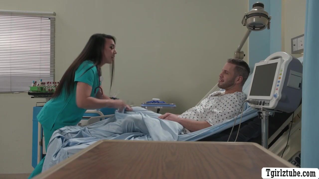 TS nurse Kasey Kei helps her patient Wolf Hudson gets better by sucking his hard big cock passionately and in return,her patient bareback fucks her tight asshole so deep and hard.Go to Tgirlztube.com for discount and more videos.