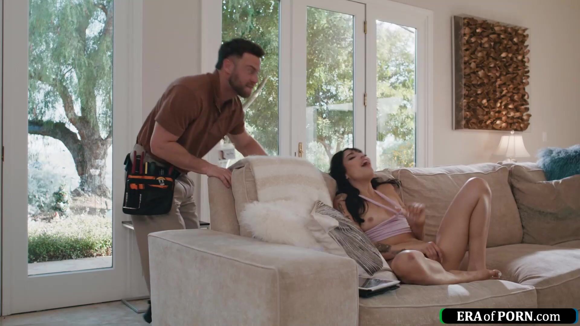 Petite latina Vanessa Sky cant wait for the cable guy to fuck off cause she really needs to masturbate.Shes shocked to find him watching her rubbing one out but the thought of dick is a pleasant one.The small tits brunette deepthroats and is banged