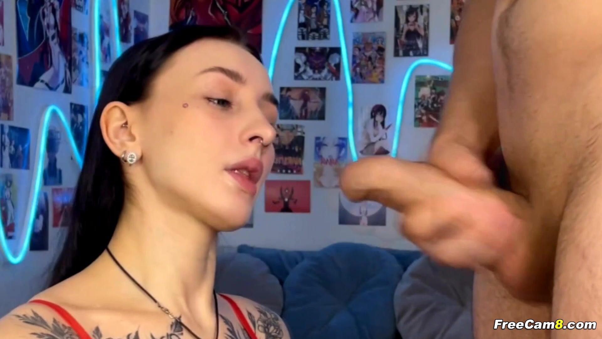 This brunette woman with inked body on her knees to sucks and swallows big cock. The way her tongue flicks and dances around his throbbing dick is pure art, each movement calculates and designed to bring him closer and closer to the edge of pleasure. Her petite body is the perfect for his eager hands and mouth, her moans of pleasure spurring him on. She loves that big member of his and wanted to have some naughty and horny fun. She continues stroking that humongous tool with ease and pleasure.